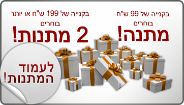סינר מחטבמחיר מחירון: ₪119.00 המחיר שלנו: ₪99.00 נייר טואלט תנוחות ( 3 חבילות )